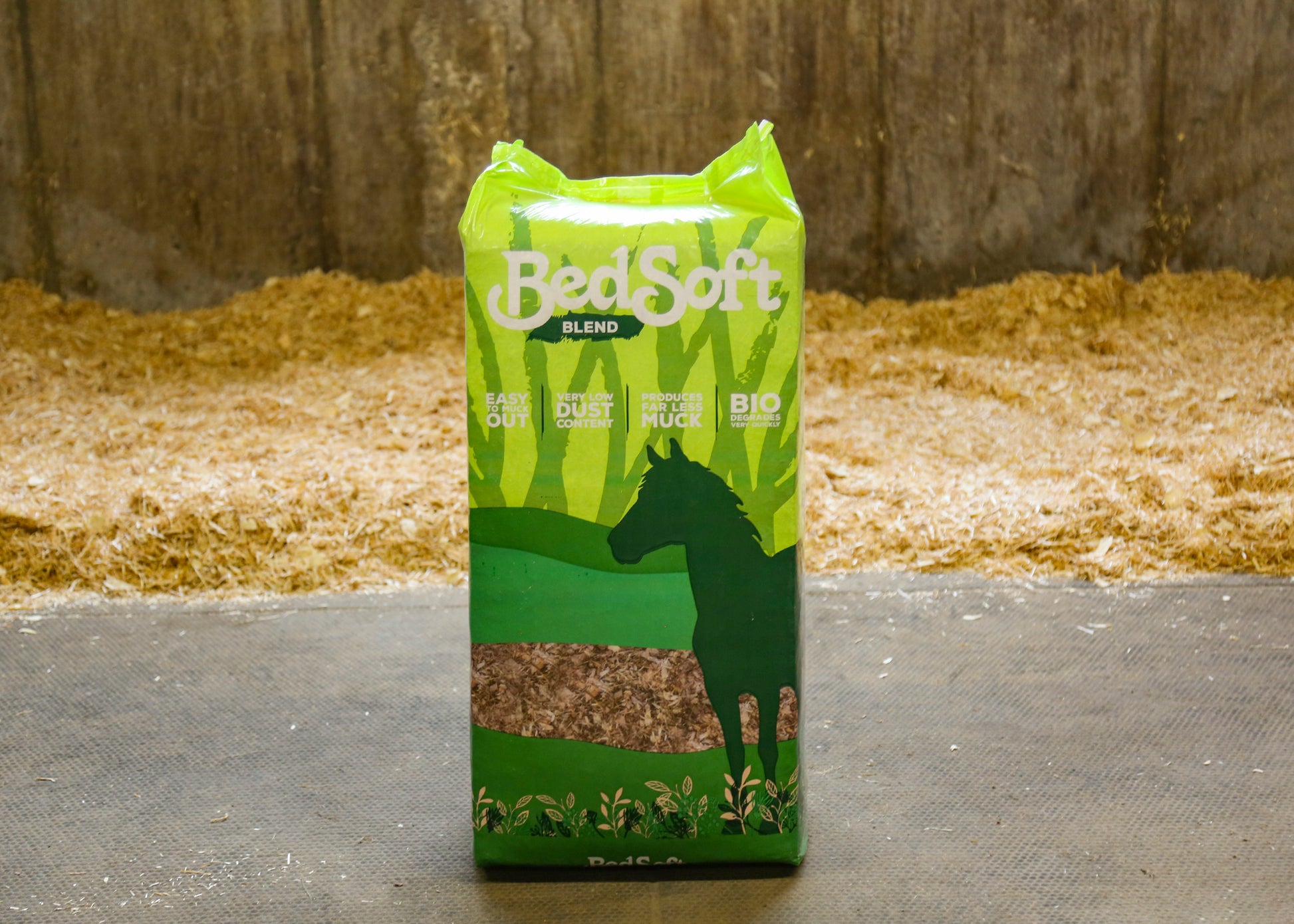 BedSoft Blend is a premium mixed equine and poultry bedding made from 80% BedSoft Original (wheat straw) and 20% BedSoft Shavings (softwood), providing a fluffy yet highly absorbent bed suitable for horses, ponies and poultry. The wheat straw component is harvested in Essex and processed using a unique shredding and chopping system to create a light, fluffy texture, while the high‑quality, dust‑extracted softwood shavings add excellent absorbency and stability. The finished product then passes through a state‑of‑the‑art dust‑extraction process before an anti‑bacterial, anti‑viral and insect‑repellent treatment is applied, supporting a cleaner, more hygienic stable or poultry housing environment.