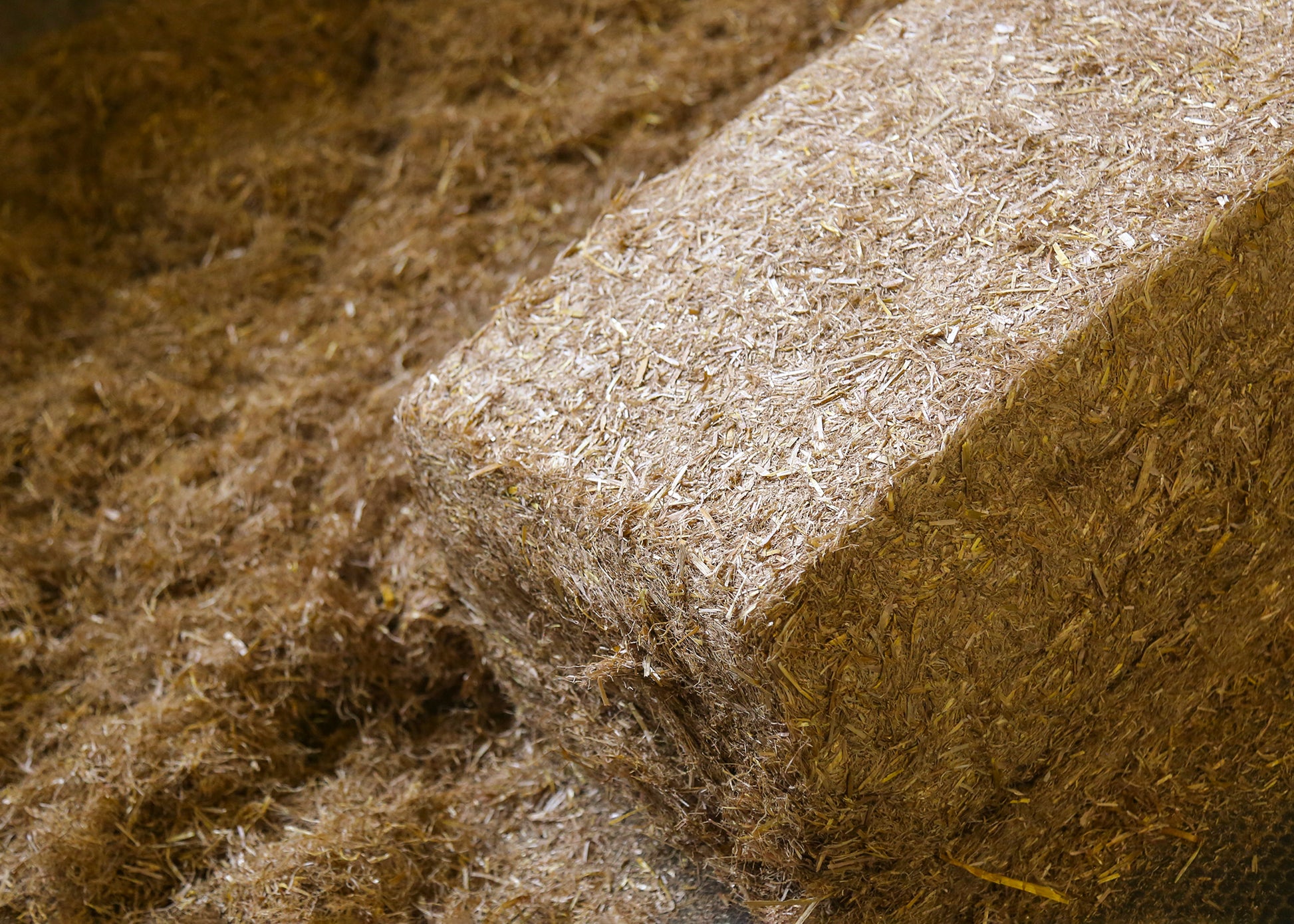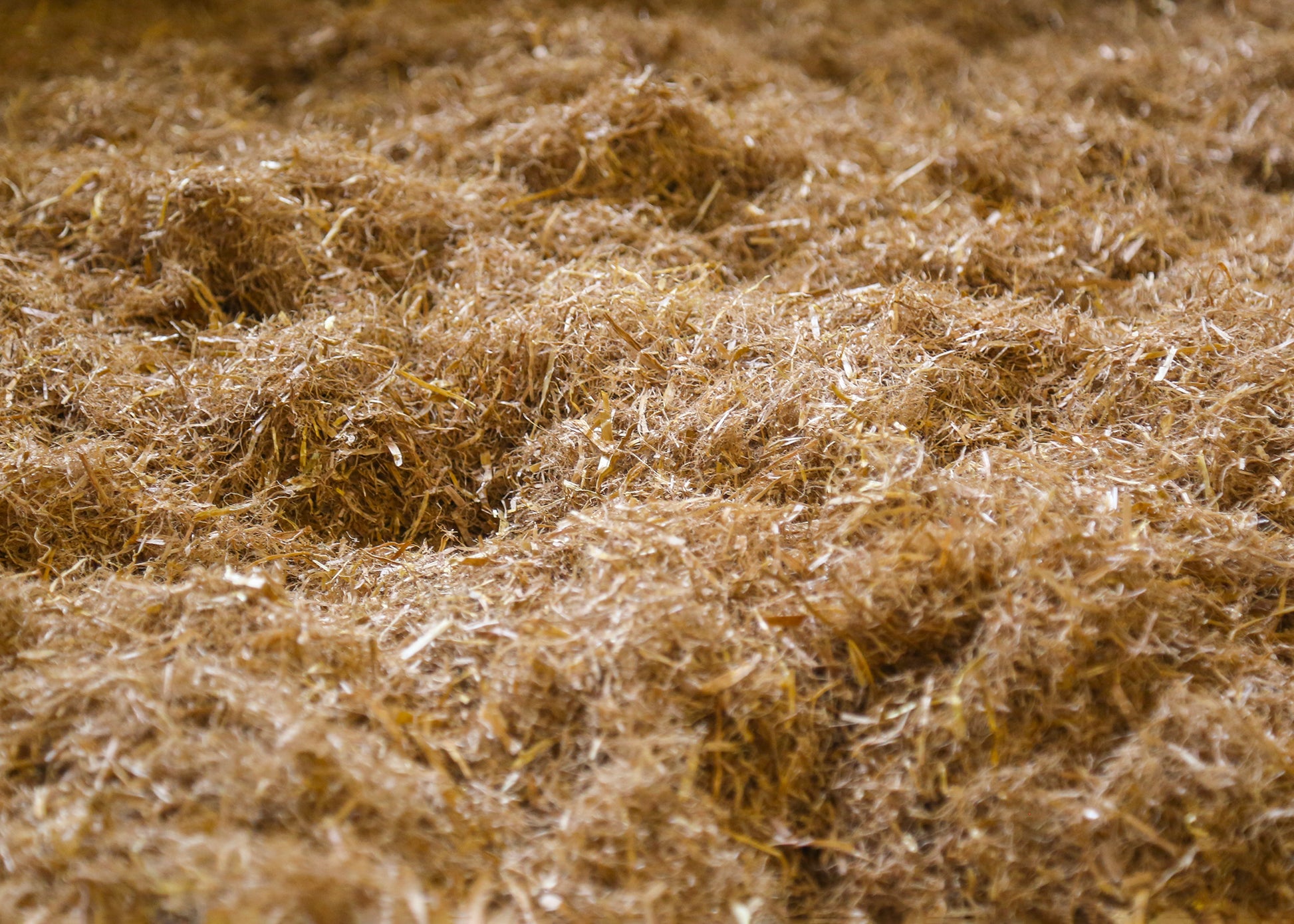 Mechanically shredded and chopped straw fibres for a light, fluffy texture